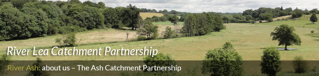 The Ash Catchment Partnership is a group of people and organisations who are working to improve the Ash for people and for wildlife. The partnership was formed in 2014 and includes a wide range of organisations, from local volunteers, parish councils and landowners to water companies and government agencies. The partnership meets formally three times a year to review progress and discuss future projects; more informal meetings take place more regularly.
