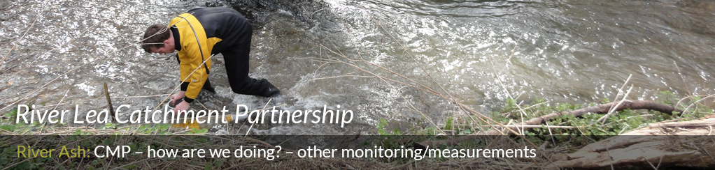 Every month, local volunteers conduct Riverfly Monitoring on the Ash at several sites. Their sampling technique involves a 3-minute kick sample of the river bed, and identification and counting of the aquatic invertebrates caught. This gives a good indication of water quality and can alert authorities to any recent pollution incidents.